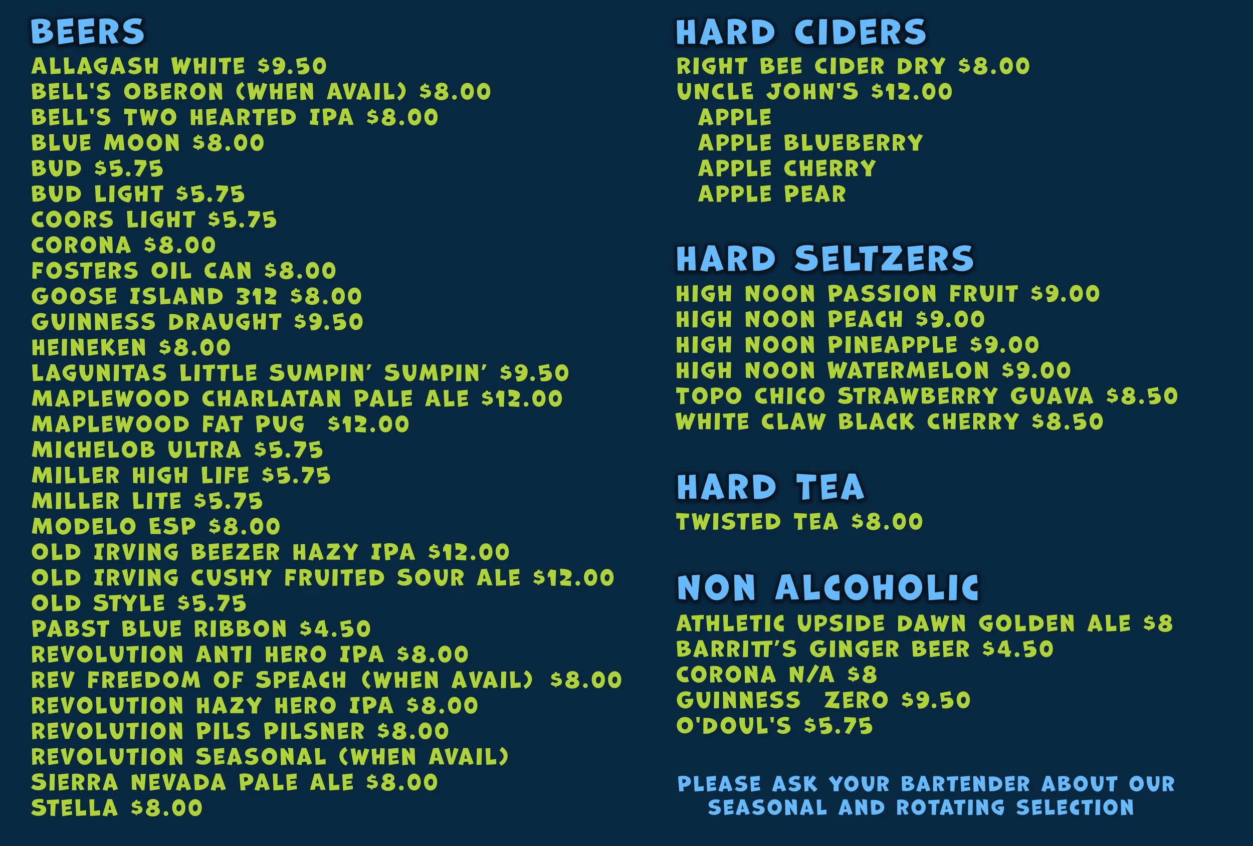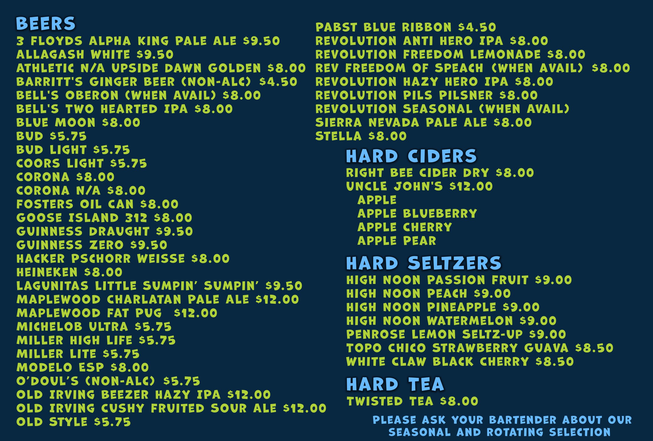 Menu and Weekly Specials